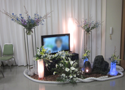 メモリアルコーナーの設置、メモリアルDVDの放映は、通夜から告別式にわたって行います。